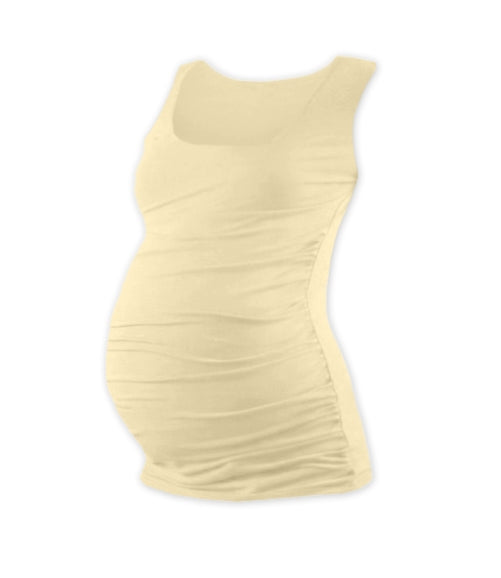 Velmi příjemný materiál (bavlna 92% + 8% elastan), který se pěkně přizpůsobí rostoucímu bříšku.